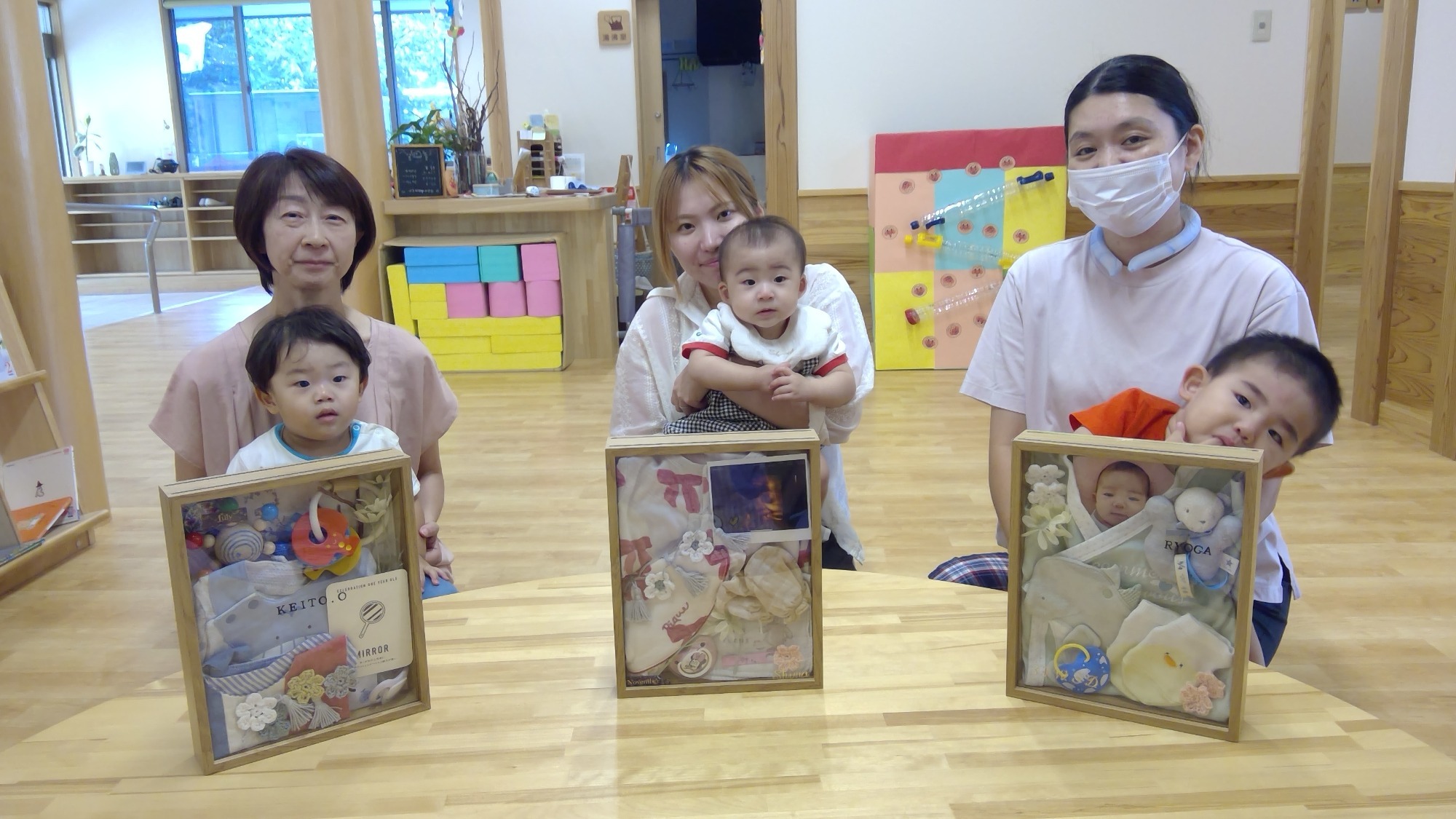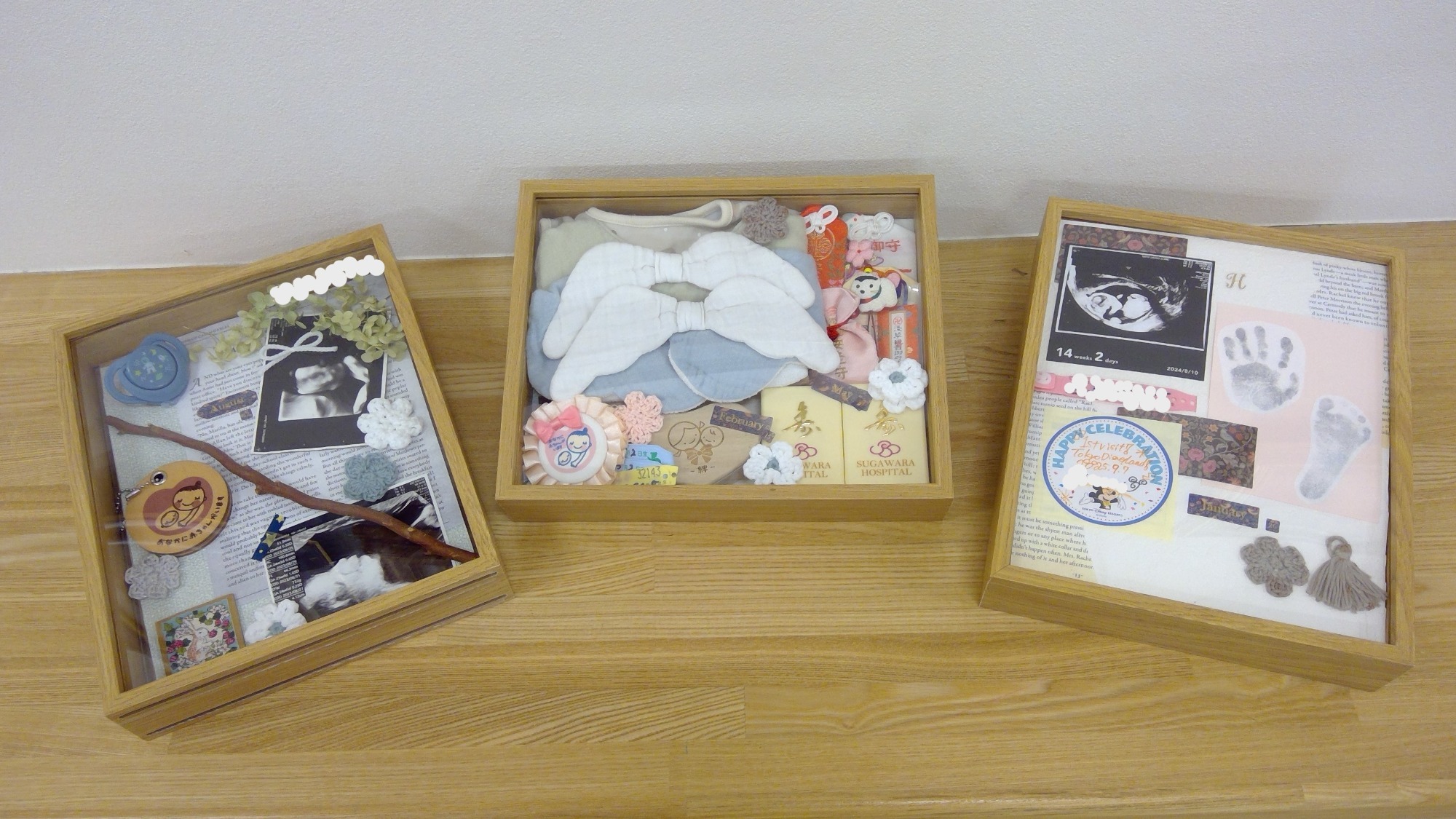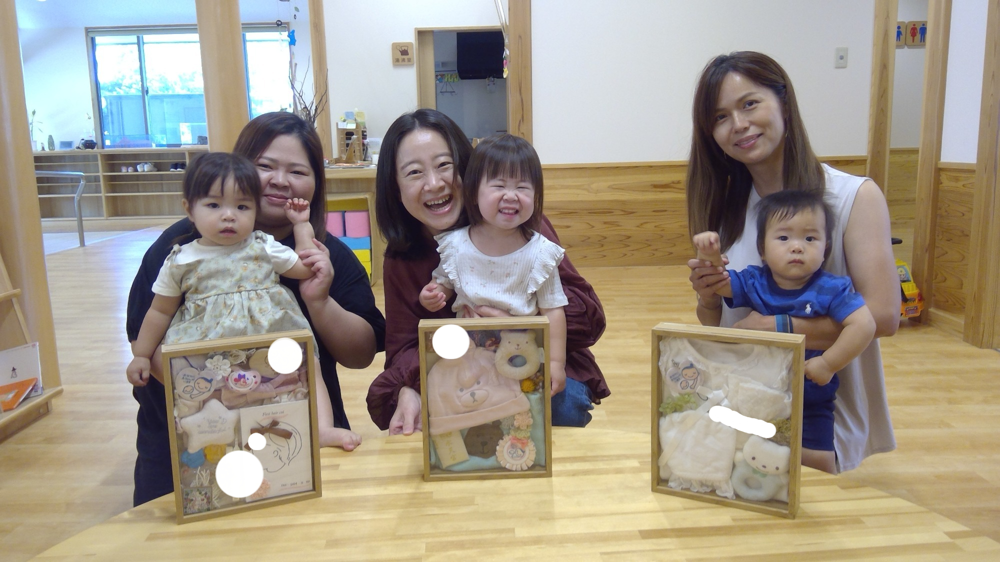 思い出のベビー用品や出産時の思い出の物を持参していただきました