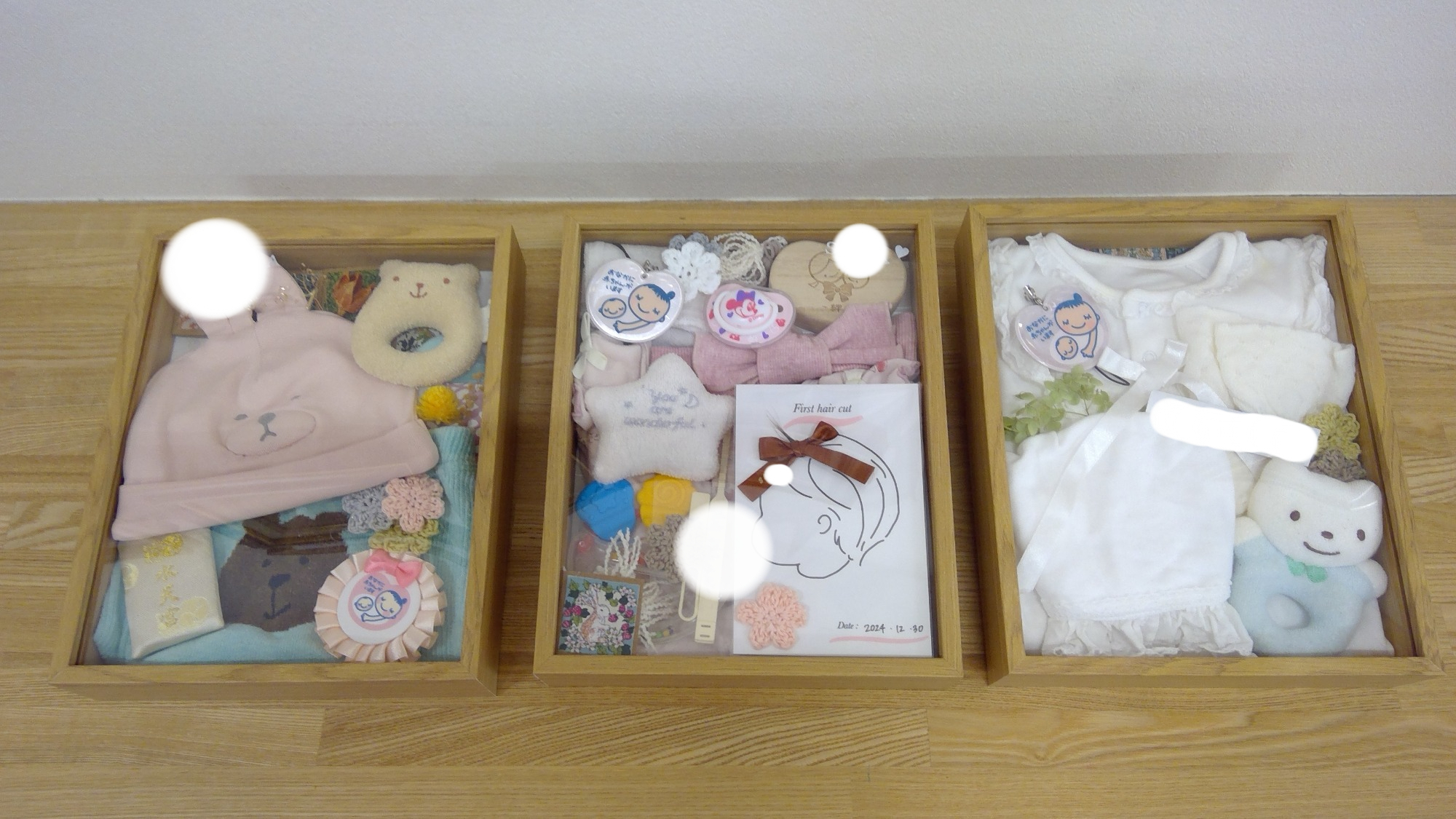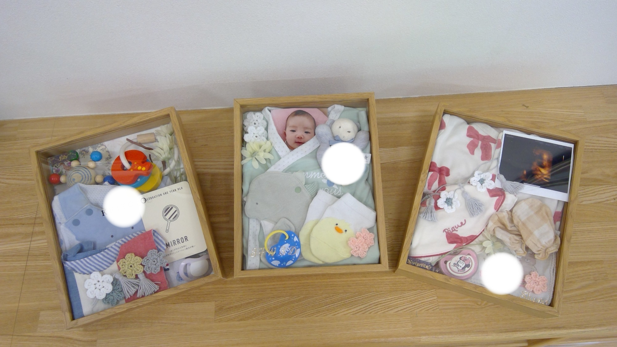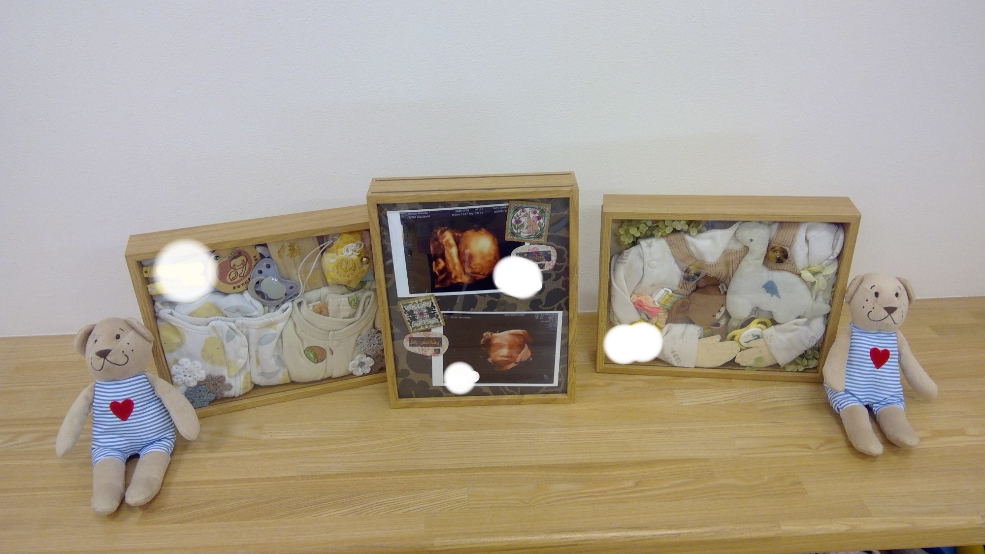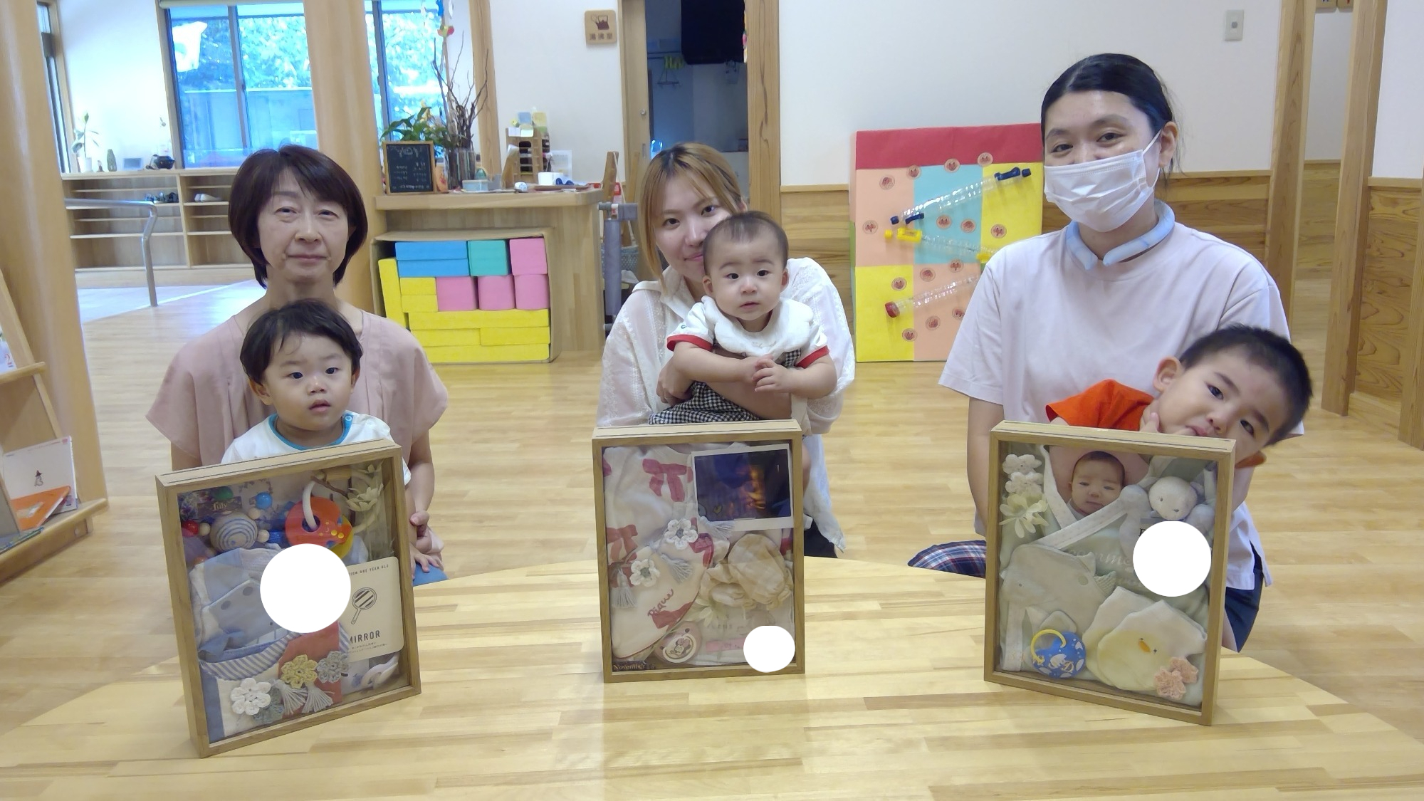 思い出のベビー用品や出産時の思い出の物を持参していただきました