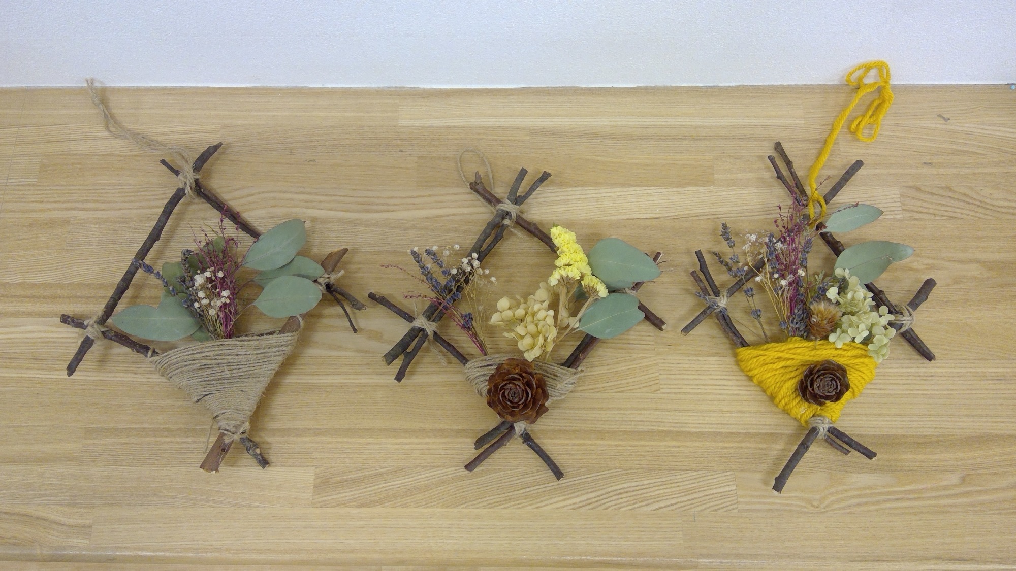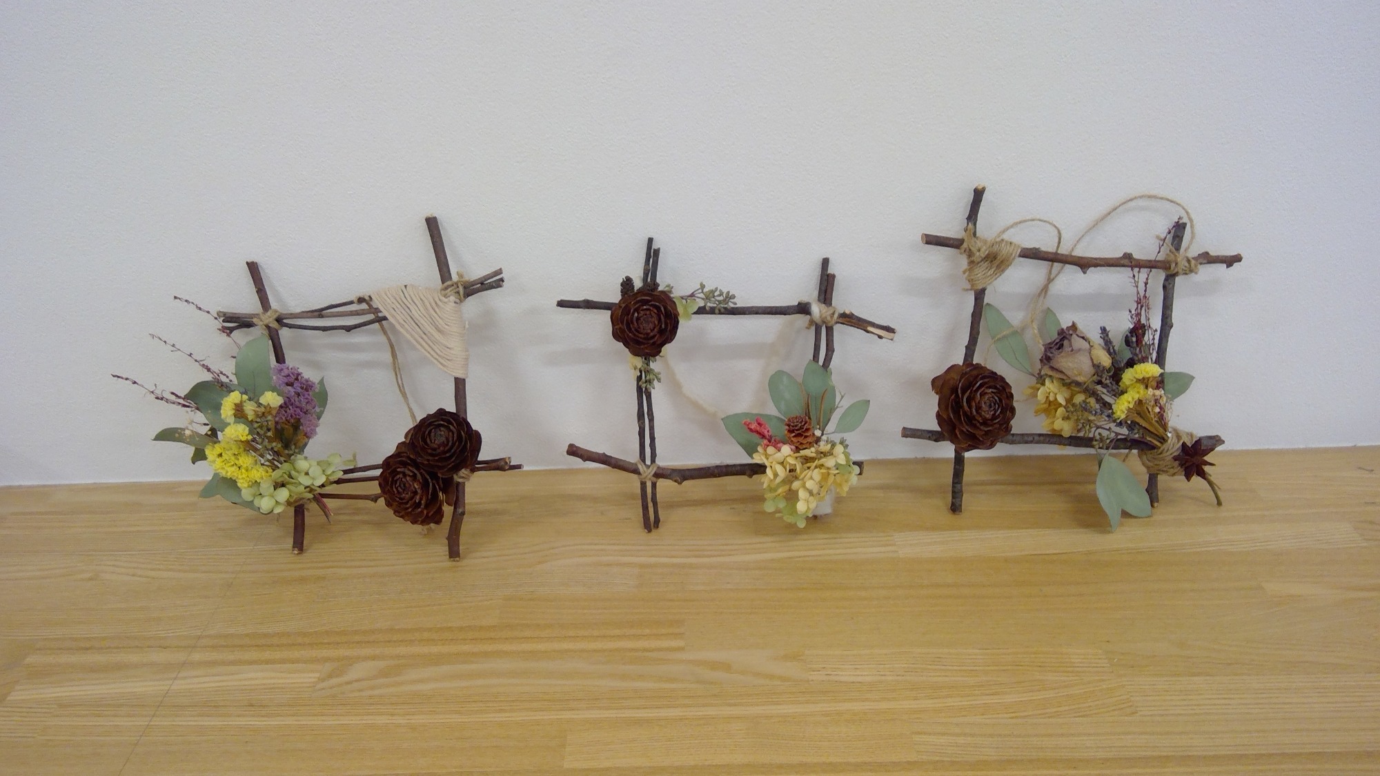 たくさんの花材の中から自分で選ぶことができてそれぞれ素敵な作品となりました
