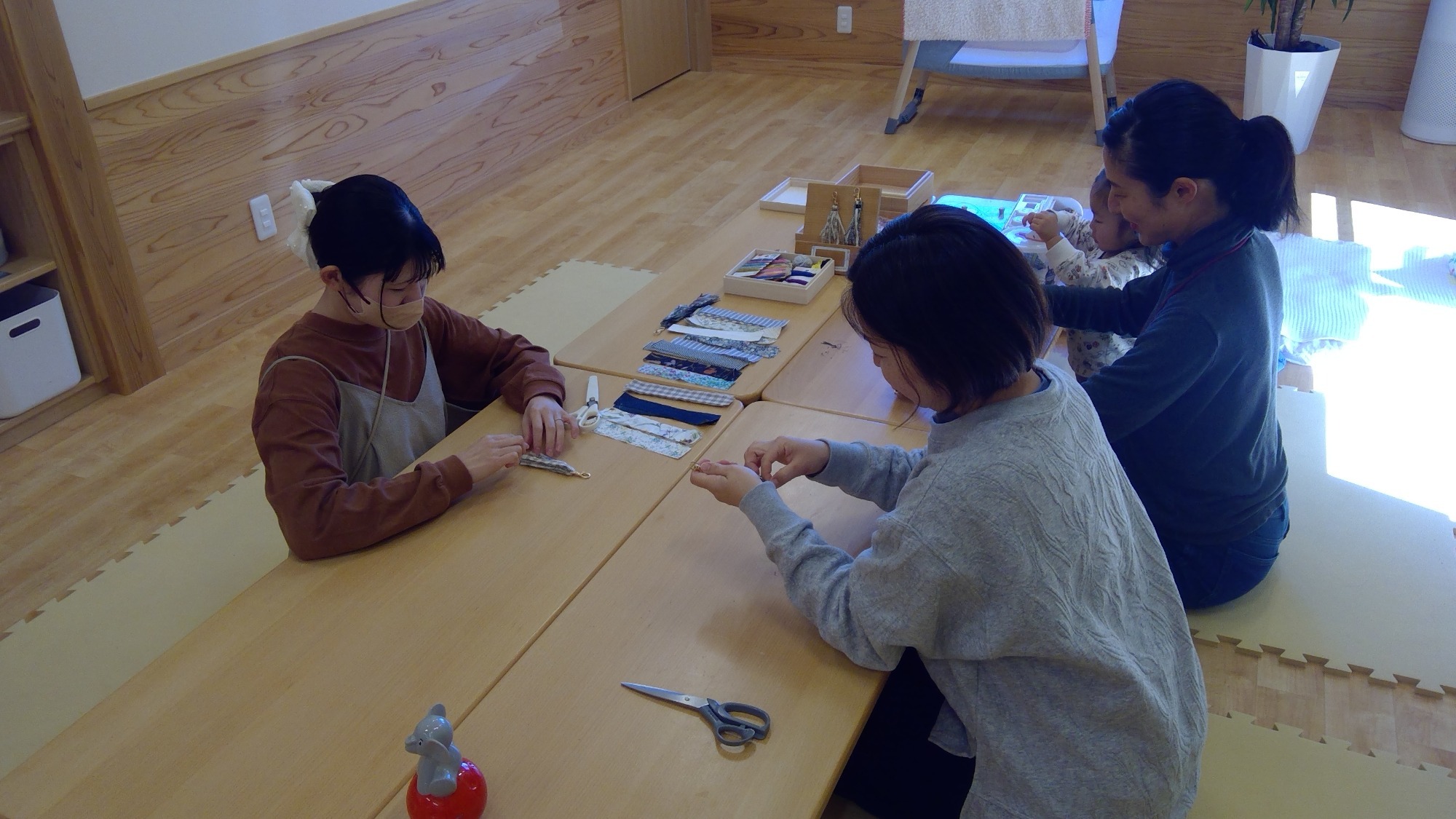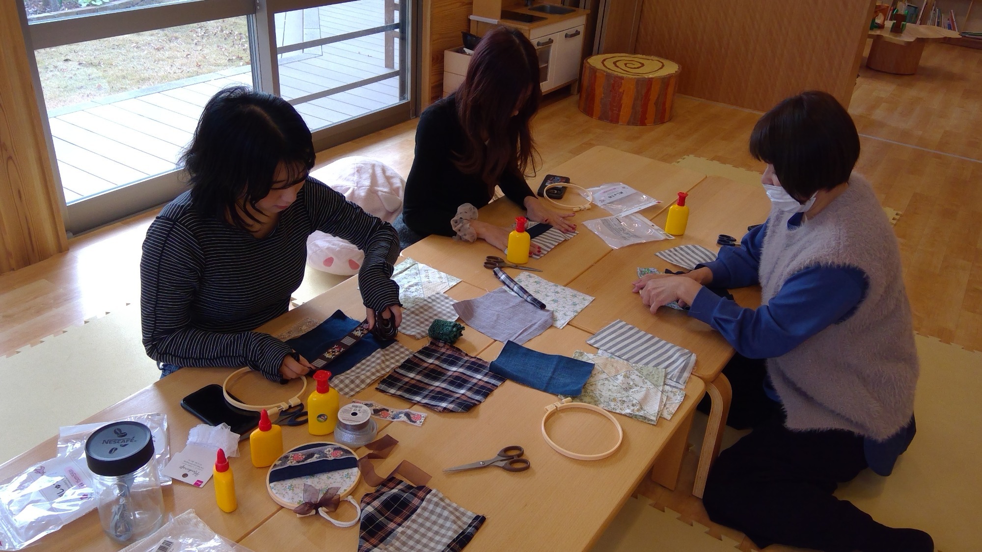 もりのどんぐり おしゃべりしながら裁縫を楽しんでいます